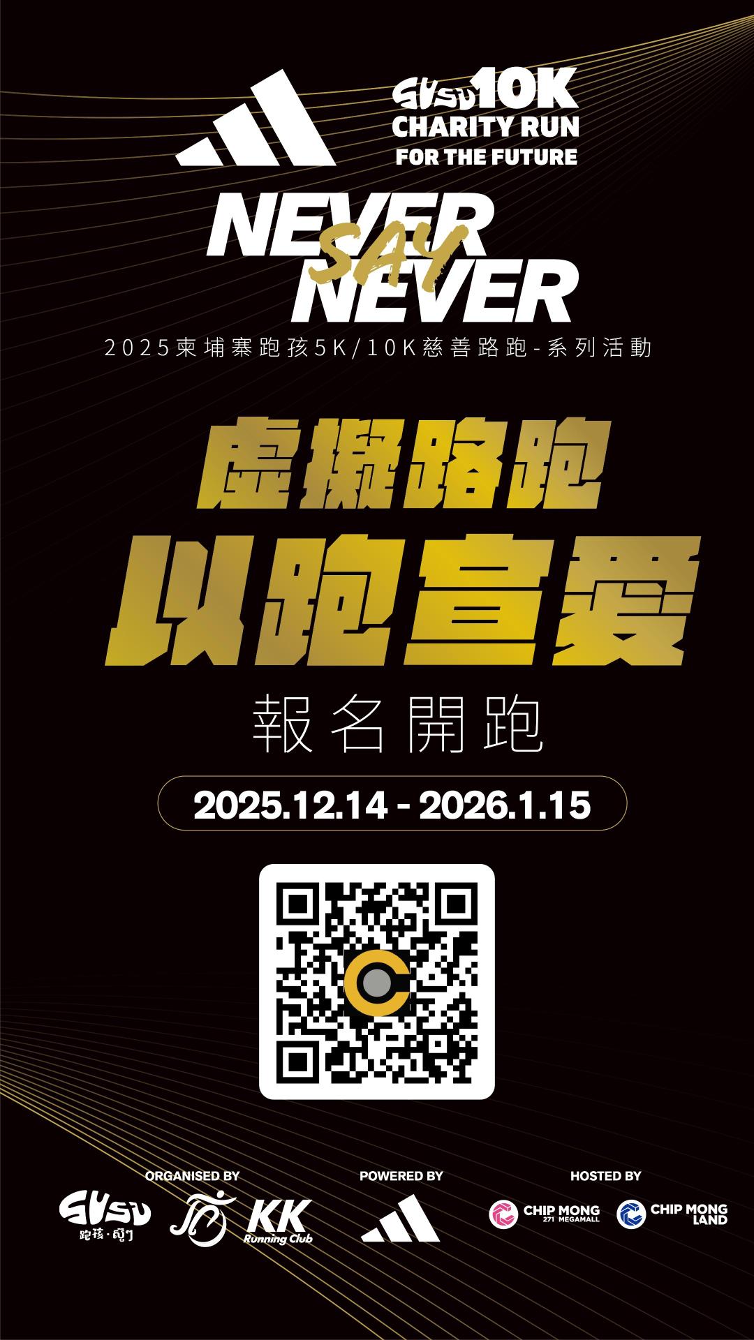 A virtual run is for anyone who can't join us in person on December 14, 2025, at Chip Mong 271 Mega Mall in Phnom Penh. You can show your support by running your chosen 5K or 10K anytime, anywhere between December 14, 2025, and January 15, 2026.